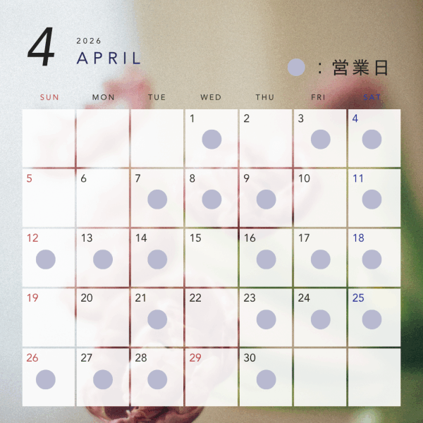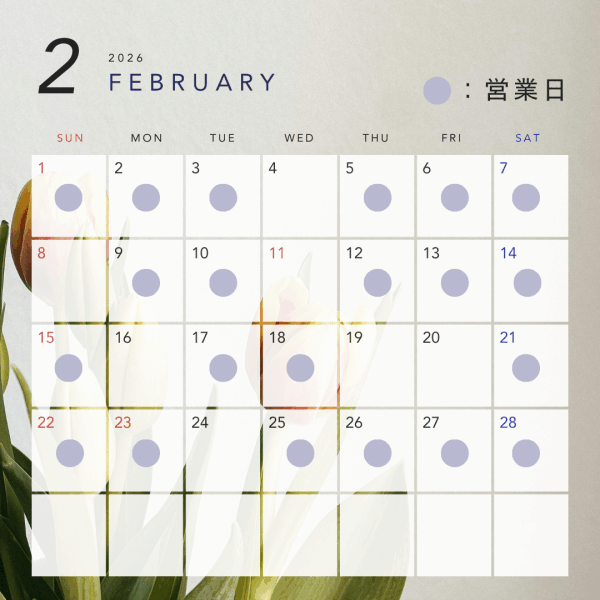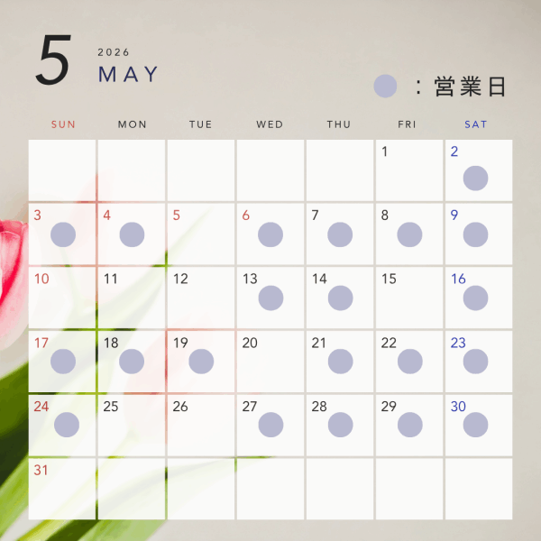 ※2025年1月から休院日は不定期です。※祝日はオープンしています。日曜日もその月によって違いますがオープンしています。